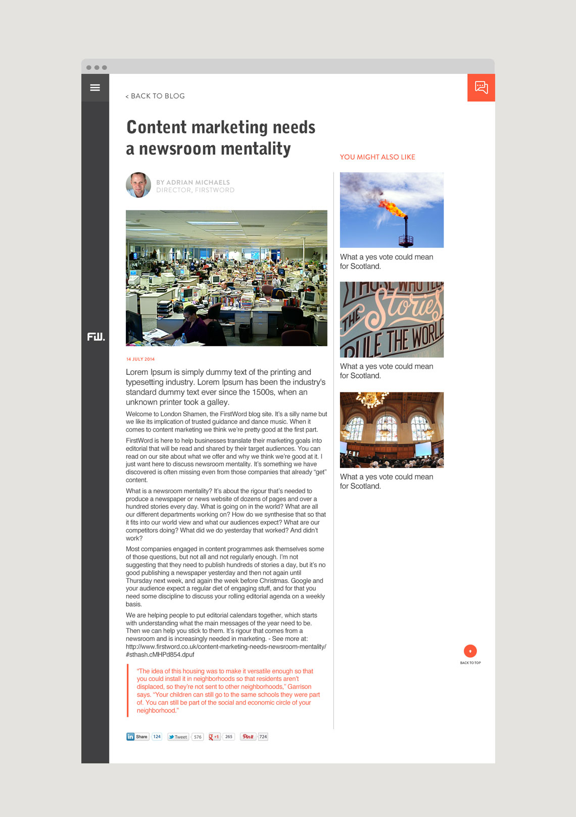 FirstWord is a Content Marketing agency based in London. Their overall goal is to become the UK’s Number 1 agency in their field, in order to do this they need to rank high on Google. Here at Belle and James we created a responsive website that could be updated frequently and become a live marketing tool going forward.