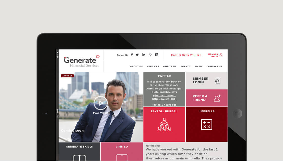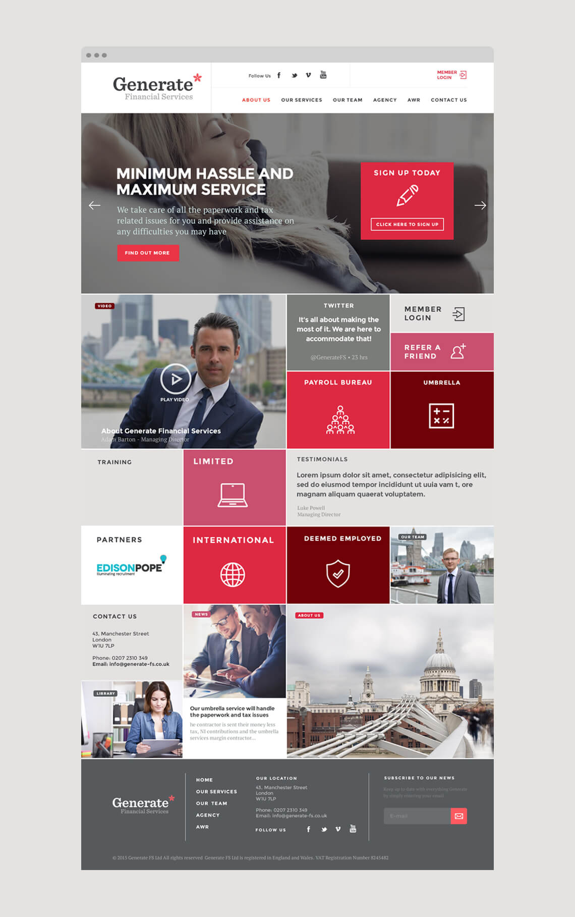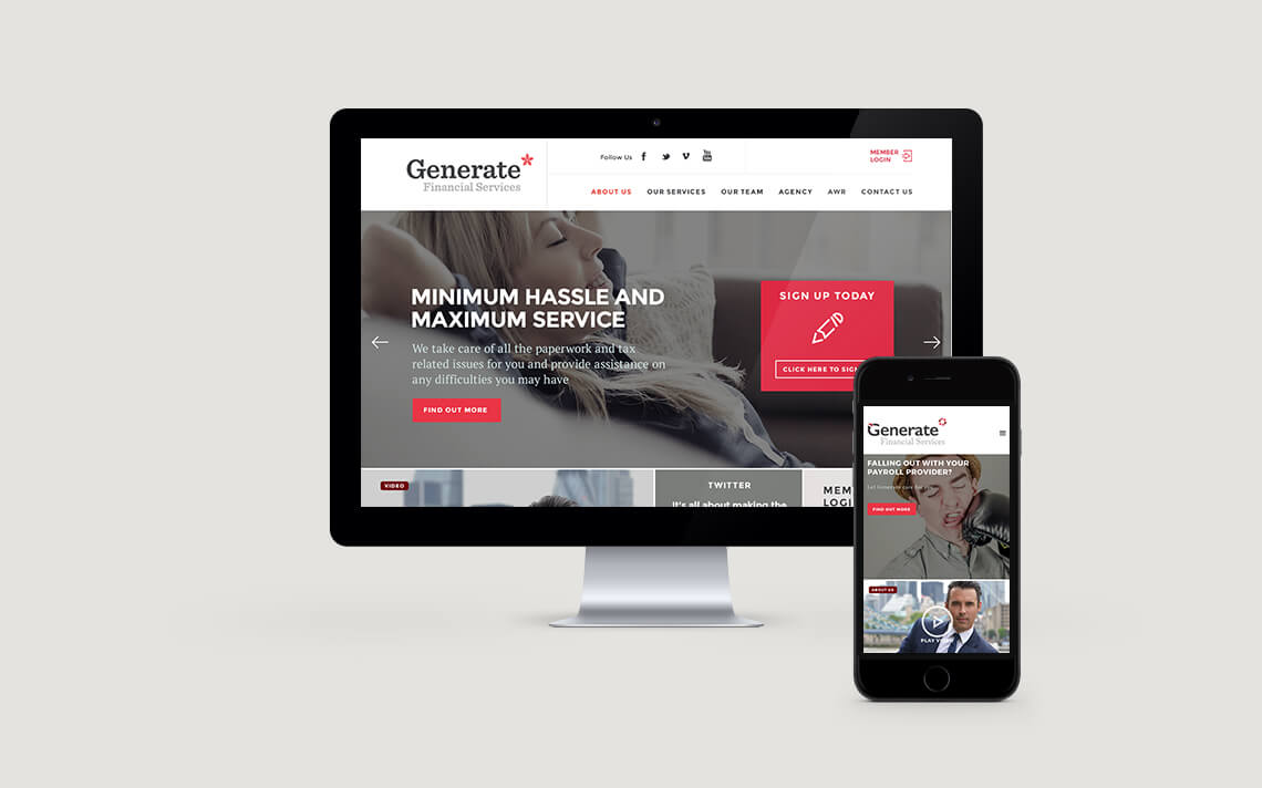 Generate is a forward thinking financial services organisation specialising in the areas of accountancy, umbrella and limited. We were tasked with creating a new website which would help this rapidly growing business promote their multiple services.
