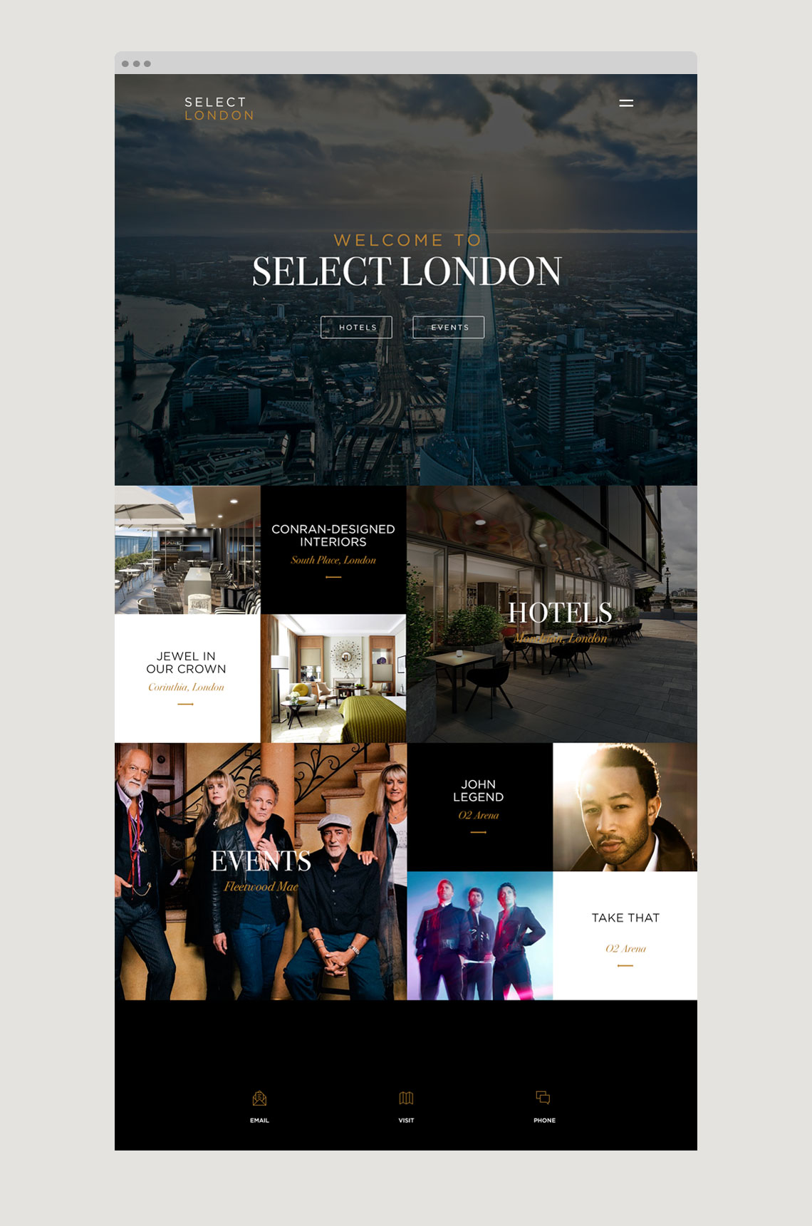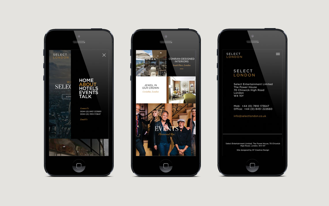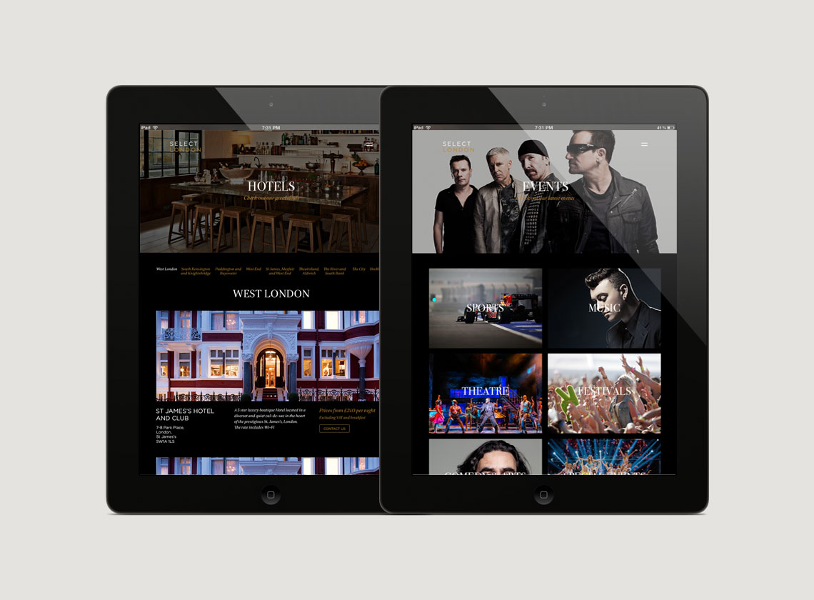 Select London offer a bespoke service to all of the hotels within their portfolio. Their aim is to offer great rates and upgrades along with VIP amenities to all their clients. We were asked to create a brand and website which could sit along side some of the 5 star hotels within the capital.