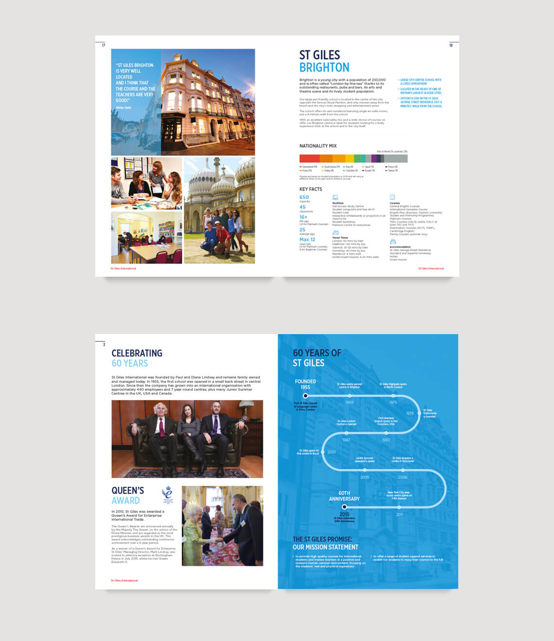 To celebrate their 60th year of providing high quality learning to overseas students, St Giles wanted to celebrate with a complete rebrand. The main focus was to freshen up their image, making it more appealing to a wider audience around the world.